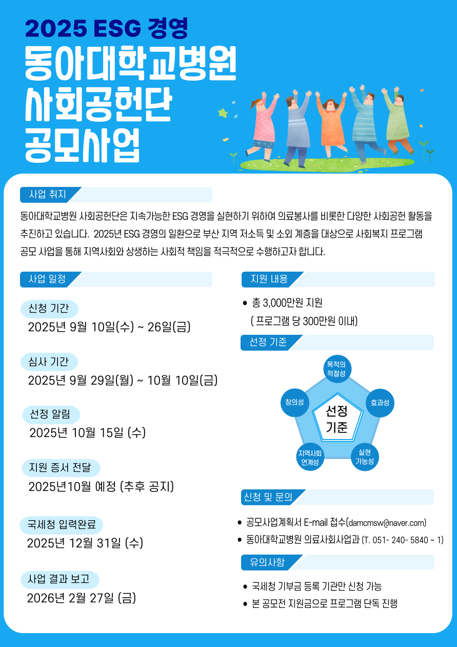 [공문]2025 ESG 경영 동아대학교병원 사회공헌단 공모사업 참여협조요청.pdf