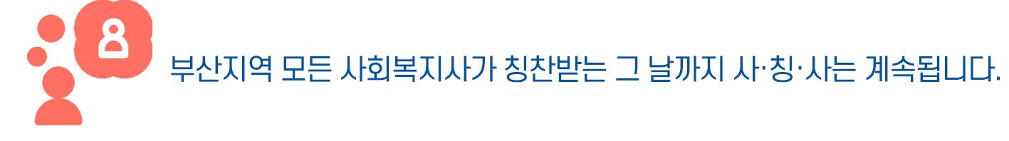 이 메일이 잘 안보이시나요? 부산광역시사회복지협의회는 '시민의 참여로 복지를 이루는 부산'을 꿈꿉니다. 시민과 사회복지현장에서 필요한 정보들을 체계적으로 관리하여 쉽게 활용될 수 있도록 돕겠습니다. 그 일환으로 한 달에 두 번, 관심있는 분들께 '부산사회복지 주요 이슈'를 정리해 보내드립니다. 6월의 부산 사회복지 이슈, 이거 하나만 보세요. 정리는 부산시사회복지협의회가 할게요. 일년의 반이 지나가고, 벌써 7월이 되었네요. 시간이 참 빠르게 흘러가는 것 같아요. 새해를 맞이하며 세웠던 계획들, 잘 실천하고 계신가요? 바쁜 일을 잠시 멈추고 일년의 반을 어떻게 보냈는지 곰곰히 생각해보는 시간을 가져보는 것도 좋을 것 같아요! 그리고 남은 6개월도 힘차게 보내볼까요? :-) 6/26 부산복지아카데미 '철학 속에서 발견한 행복한 복지' 실시 7/03 사하구 에너지 빈곤층을 위한 '에너지 나눔 전달식' 진행 7/04 2019 장애인 그린 일자리 한마당 개최 7/08 부산광역시다사랑복합문화예술회관 태국 방콕시 고령자 의료복지 정책 연수단 내방 7/09 부산 사상구 감전동, ‘썸머 쿨 꾸러미’ 나눔 행사 지역사회에 알리고 싶은 소식이 있다면 http://bswin.net/welfare_news2 에 남겨주세요! [보건복지부] 이른둥이 양육 물품 및 이른둥이 부모교실 지원 협약 체결 [복지로] 아동보호 지원업무 한곳에서…16일 아동권리보장원 발족 [복지로] 여성 10명 중 4명 '자녀출산·양육 탓에 직장 그만둔 적 있다" [복지로] 폭력 벗어나고 싶지만…남편에게 달린 결혼이주여성 체류권 [웰페어이슈] 文대통령, 청각장애인 택시 타고 사회적기업 응원…'청와대 갑시다' [웰페어이슈] '현금복지 재검토' 복지대타협특위 출범…중앙·지방 복지사업 재정립 [이로운넷] 문 대통령 "사회적경제, 지역기반·민간주도·정부뒷받침" 재천명 사·칭·사(사회복지사가 칭찬하는 사회복지사)는 매월 릴레이 형식으로 연재됩니다. 61번째 주인공 연제구노인복지관 류미경 사회복지사 자세히 보기 부산광역시보호아동자립지원센터 보호종료아동 주거지원통합서비스 담당 직원 채용 ~7/23 연제구건강가정다문화가족지원센터 팀장 채용공고 ~7/21 금정구 장애인 근로작업장 시설장 모집 ~ 7/19 부산광역시자원봉사센터 직원 채용 ~7/15 2019년 부산진구정신건강복지센터 채용공고(학생정서행동특성검사 상담전문인력) ~7/17 동래구노인복지관 계약직 사회복지사 채용 공고 ~7/15 부산여성장애인연대 부설 성·가정통합상담소 상담원 채용공고 ~7/16 부산사회공헌정보센터 직원 채용 공고 ~7/22 사회복지 자원연계·공모 관련 소식입니다! [부산사회복지공동모금회] 2019년 기획 '지역 이슈 기반 배분사업' 공고 [대한수상스키웨키으스포츠협회] 행복나눔사업(수상스키웨이크스포츠)캠프 신청자 모집 안내 [환경부·SK이노베이션] 사회적기업 창업 아이디어 공모전 [넥슨재단] 2019년도 넥슨작은책방 모집 공고 안내 [월정어린이복지재단] 2019 저소득층 아동 의료비 지원 사업 공모 [아산사회복지재단] SOS 복지지원사업 안내 [사회복지공동모금회] 2019년 취약계층 경제적 자생력 강화를 위한 재무컨설팅 및 대출 지원사업 수행기관 공모 안내 작성 부산 사회복지 정보 뉴스레터 2019. Vol 37. 부산 사회복지 정보 뉴스레터 2019. Vol 35. 목록 글쓰기