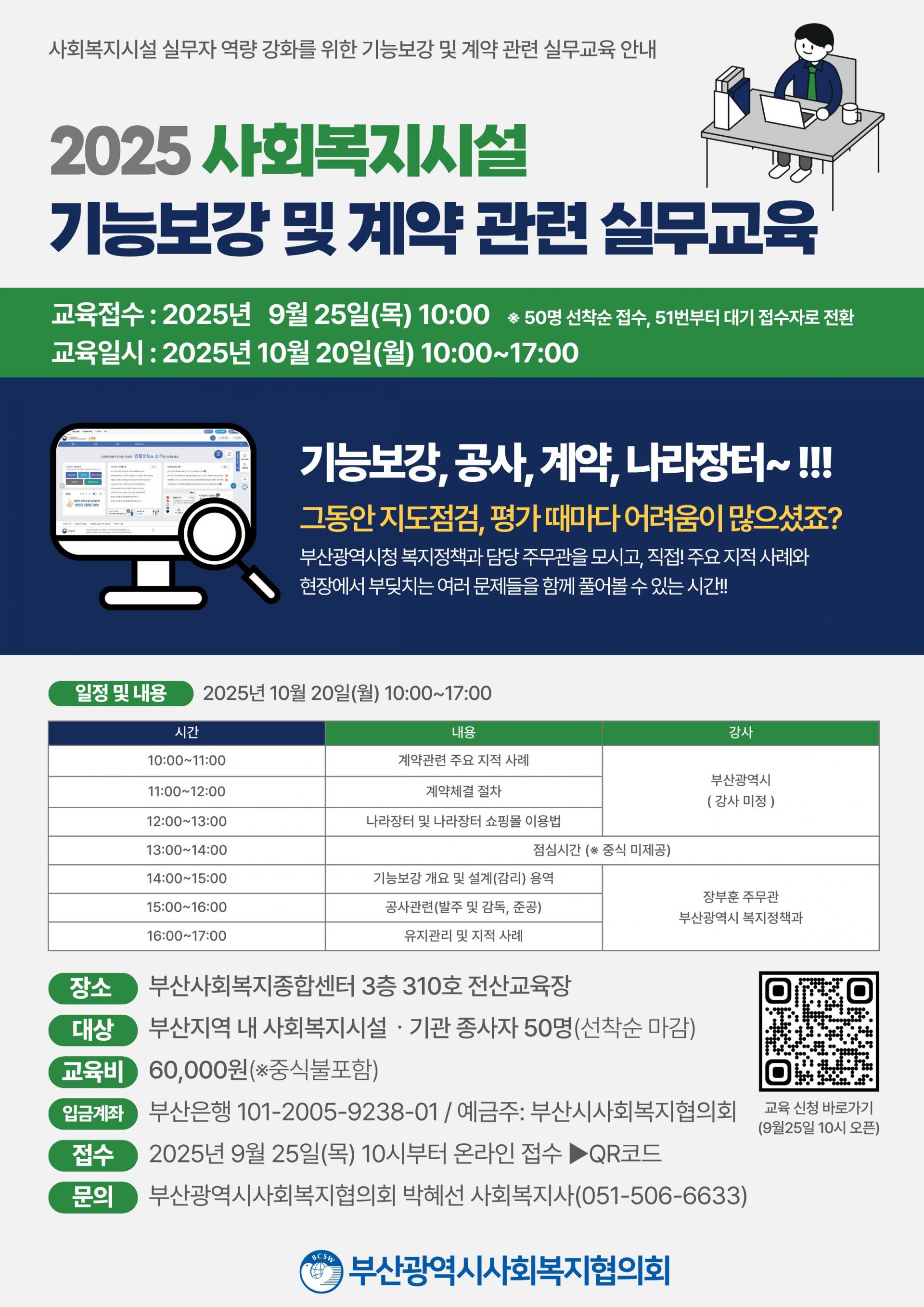 2025년 사회복지시설 기능보강 사업 및 계약 관련 실무교육 실시 안내